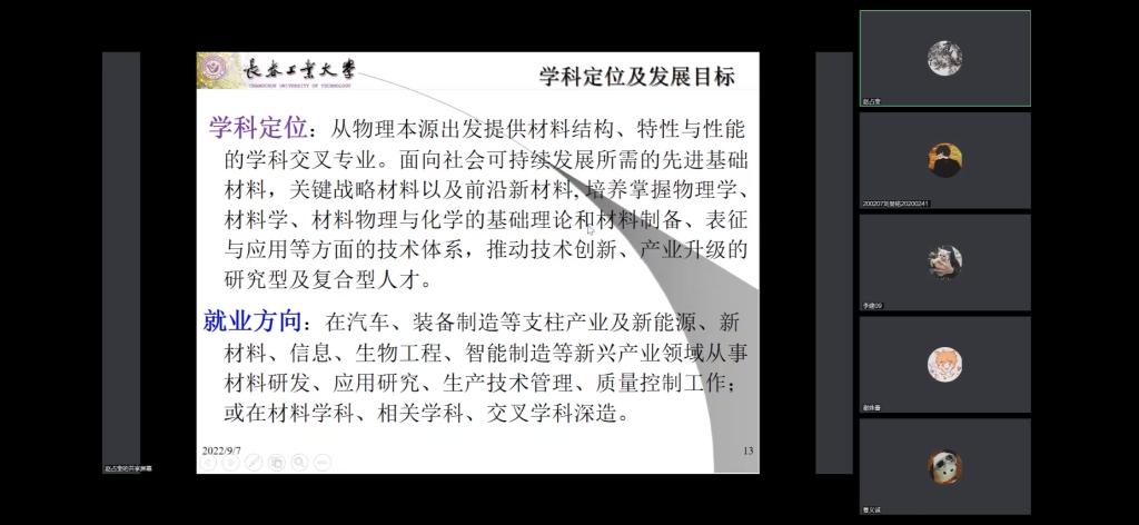 金属材料工程系主任陈华,材料成型及控制工程系主任赵宇,材料物理系主任赵占奎分别为2022级新生开展专业介绍会。