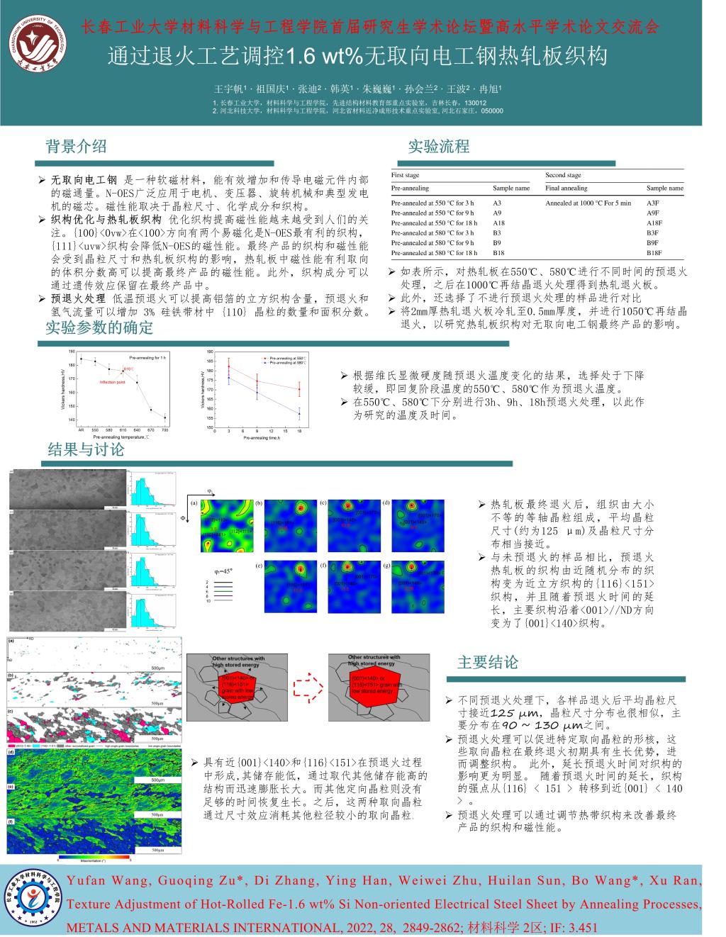 通过退火工艺调控1.6 wt%无取向电工钢热轧板织构-fc2av 首届研究生学术论坛暨高水平学术论文交流会