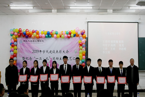 2019年度学院学风建设工作在学院党委的正确领导下,在上级部门的具体指导下,圆满完成了一系列工作任务,涌现出了一批先进集体和优秀个人,为发扬成绩、鼓励先进,促进学风建设工作又好又快发展,经过全面考核决定,学院决定对优良学风班级、优良学风团支部、优良学风寝室、三好学生 、三好学生标兵、材料之星、十佳自立自强大学生、十佳优秀大学生予以表彰奖励。