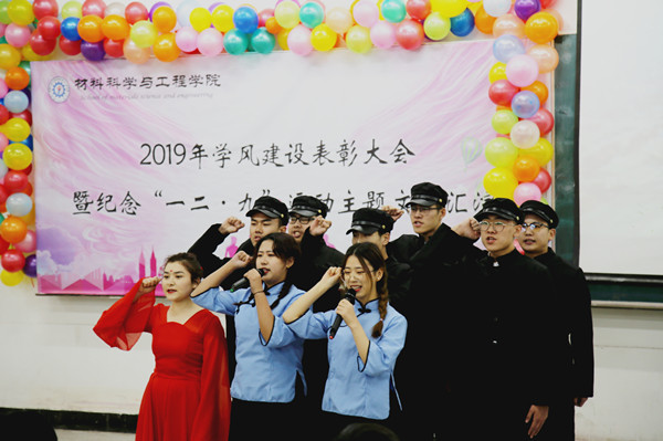 在北湖校区西阶102教室举办学风建设表彰大会暨纪念“一二·九”运动主题文艺汇演。应邀出席本次大会的领导及嘉宾有:校党委副书记孟雷、校党委副书记李雁冰、校教务处处长李万龙、校学生工作部部长周文军、校团委书记仲崇利、校党委宣传部副部长邹绍岩、学院党委书记兰民、院长冉旭 、党委副书记吴文东、副院长刘耀东、副院长赵占奎、副院长韩英、金属材料工程系主任陈华、材料成型及控制工程系主任赵宇、学院全体辅导员及辅导员助理、教师代表、受表彰学生代表及各年级学生代表。本次大会由fc2av
