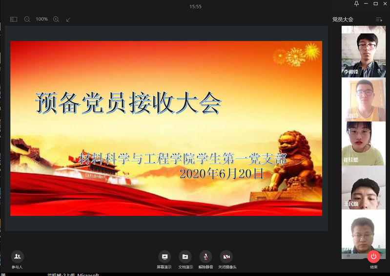 学生第一党支部召开党员发展大会,会议内容主要讨论曲冠达等7名同志的入党问题,会议由学生第一党支部书记万杨主持,学生第一党支部副书记李爽以及该支部全体学生党员参加会议。