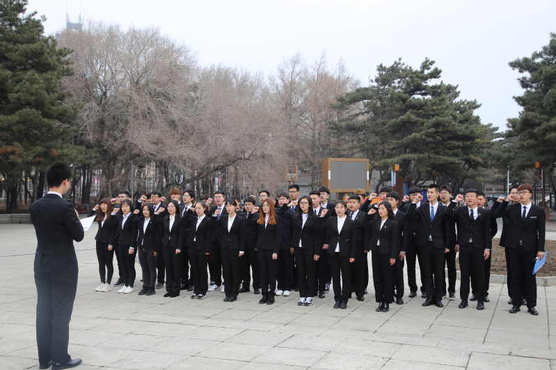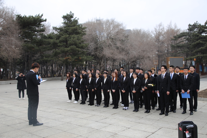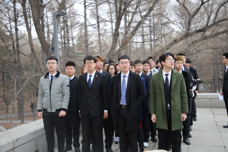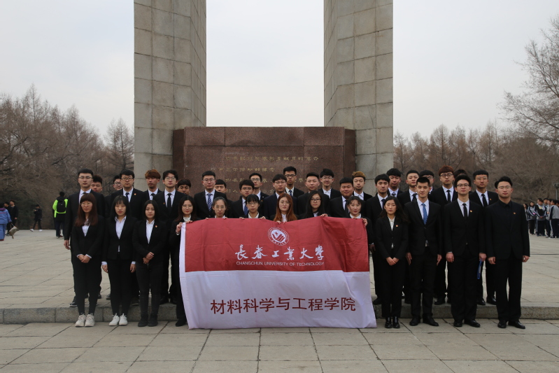 学生干部前往长春市南湖公园长春解放纪念碑纪念在革命中牺牲的烈士。