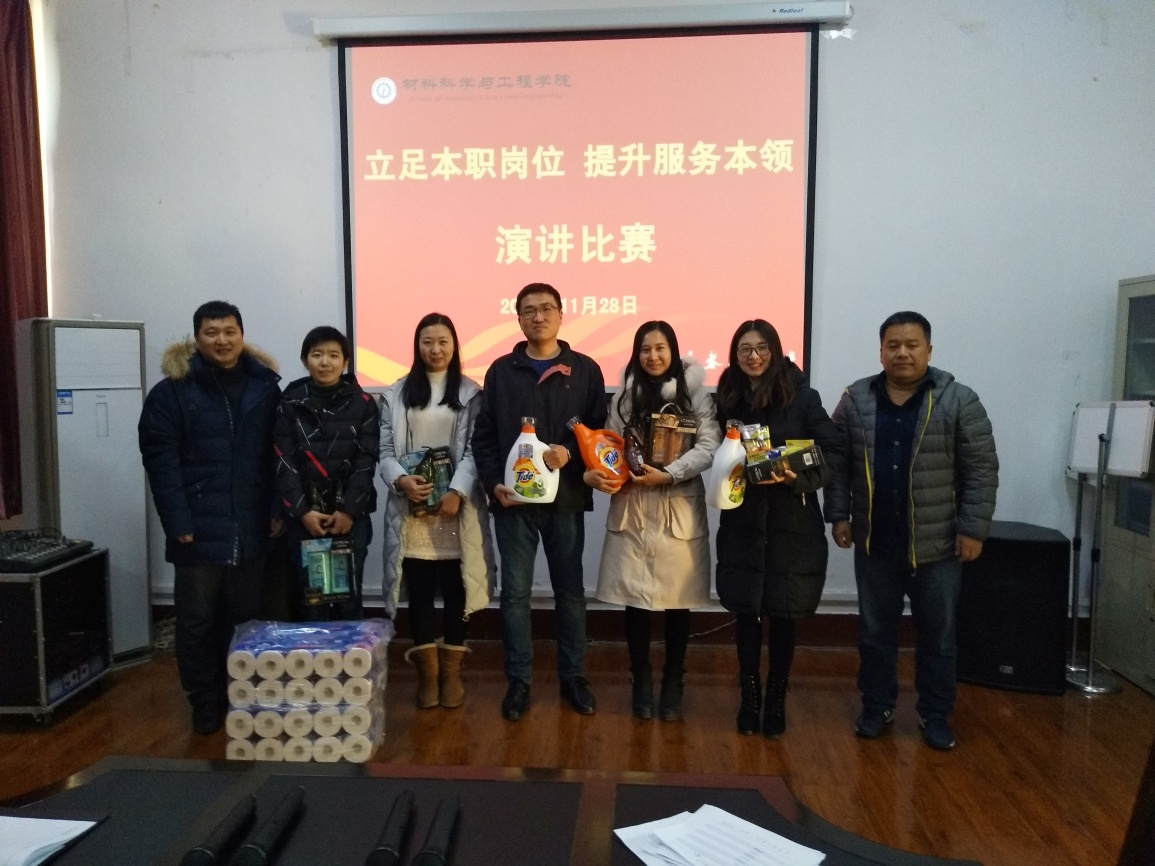 新闻网讯(通讯员邹绍岩)2018年11月27日下午13时30分,学院党委在材料楼5楼党员活动室开展了“立足本职工作岗位提升服务师生本领”演讲比赛。学院全体党员参加了活动。党委班子成员担任本次比赛的评委。此次演讲比赛活动由党委专职组织员邹绍岩主持。