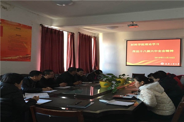 党委在五楼会议室内严肃认真的学习了党的十八届六中全会的会议精神。这次学习活动由党委书记夏天民主持,各系主任和党支部书记及二级理论中心组成员参加了学习。