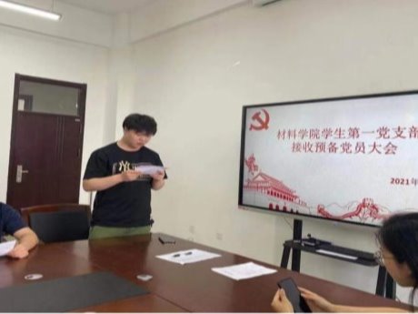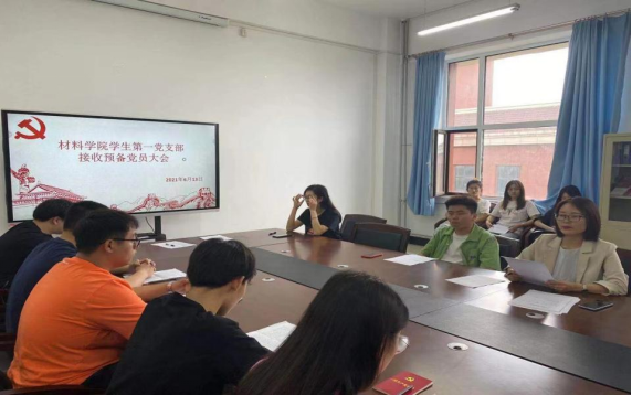 学生第一党支部于材料楼425会议室召开预备党员接收大会。本次大会由支部书记李爽主持,支部全体党员参会。