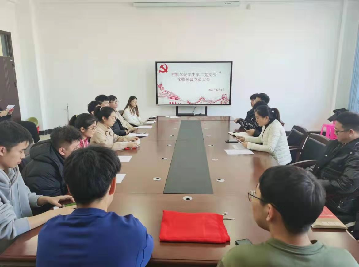 学生第二党支部于材料楼425会议室召开接收预备党员大会。本次大会由支部书记张晓君主持,支部全体党员参会。