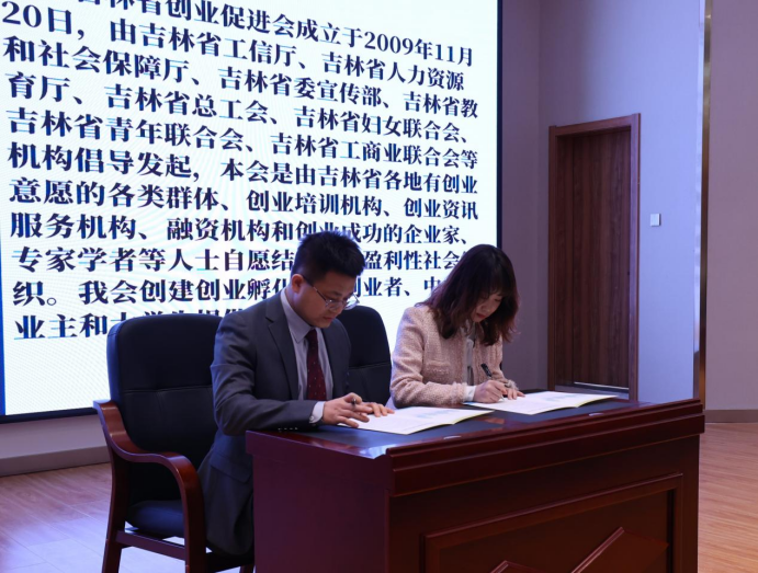 团委书记万杨做为学院代表于2021年4月29日参加了联盟成立大会,会上与吉林省创业促进会现场签约了合作协议。
