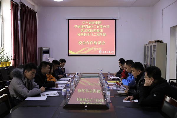 邀请辽宁忠旺集团,孚迪斯石油化工有限公司,凯莱英医药集团代表莅临学院参观调研,并与企业代表召开校政企合作洽谈会。学院党委副书记吴文东、副院长刘耀东,专职组织员邹绍岩,团委书记万杨,材料物理系主任赵占奎,材料成型及控制工程系党支部书记高亮参加了洽谈会。