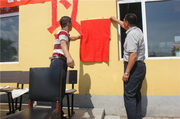 大会第一项,升国旗,由志愿者及富强小学学生组成的护旗手共同完成升旗仪式,两校领导师生庄严肃立,向国旗致敬。在启动仪式的第二项,夏天民和周建飞举行隆重的揭牌仪式,这代表着fc2av