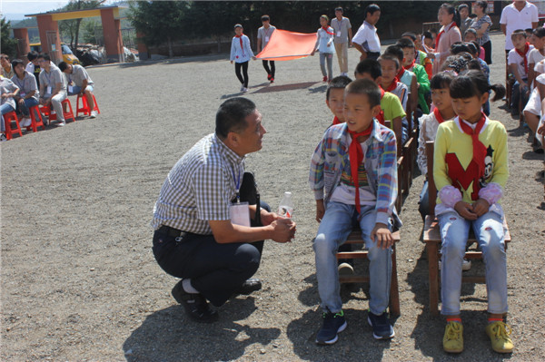 与白石山镇富强小学将建立长久的友谊,祝愿富强小学蓬勃发展,希望在两校师生的共同努力下成为地方小学的风向标时",掌声更是长久不息。