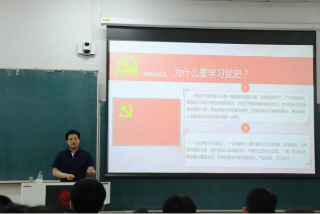 党课上,万杨以“为什么要学习党史”为切入点,向同学们讲述了党史学习的重要性,他讲到,中国共产党的奋斗史是一部波澜壮阔的历史 ,在党的领导下,广大党员和全国各族人民经过艰苦卓绝的努力,开创了中国发展的崭新纪元。学习党史可以增进对党的了解,更加深刻认识到党的性质,更加深刻认识到党的伟大。