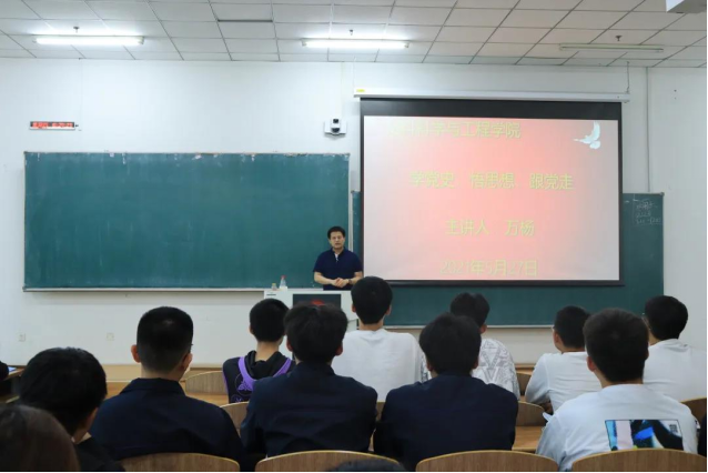 青年学生“学党史、强信念、跟党走”学习教育实施方案》的相关要求,学院团委于2021年5月27日在北湖西区东阶201教室,举办“学党史、悟思想、跟党走”专题党课,此次党课由学院团委书记万杨主讲,部分学生干部、20级部分学生参加了党课学习。