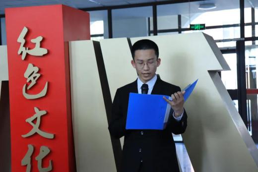 学生代表吕梓源代表学生发出倡议,作为青年大学生,我们要不断学习党的光辉历史,从自我做起,从每一天做起,一步一个脚印,一步一个台阶,以锐意进取、永不懈怠的精神状态,向着实现中华民族伟大复兴的中国梦奋勇前行。