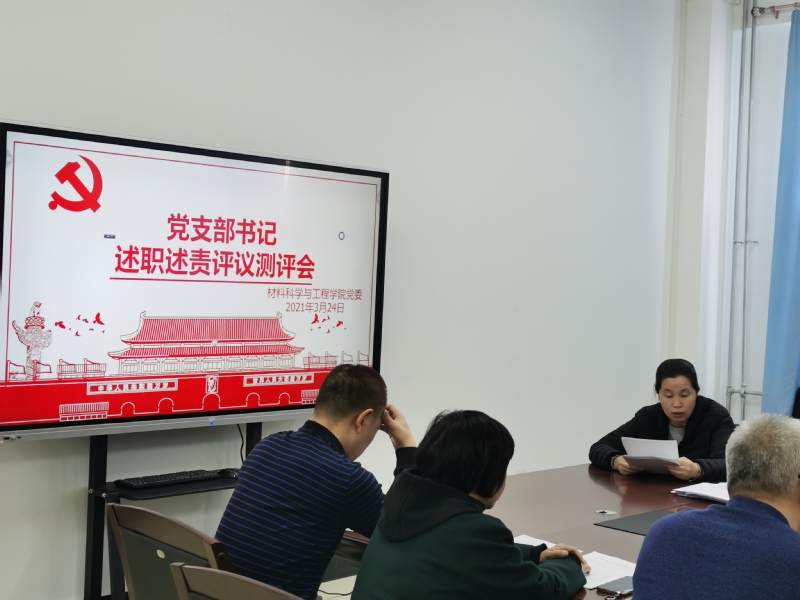 在材料楼425会议室召开2020年度党支部书记述职述责测评会。经济管理学院党委书记杨文龙到会指导并做集中点评,院党委书记兰民主持会议。