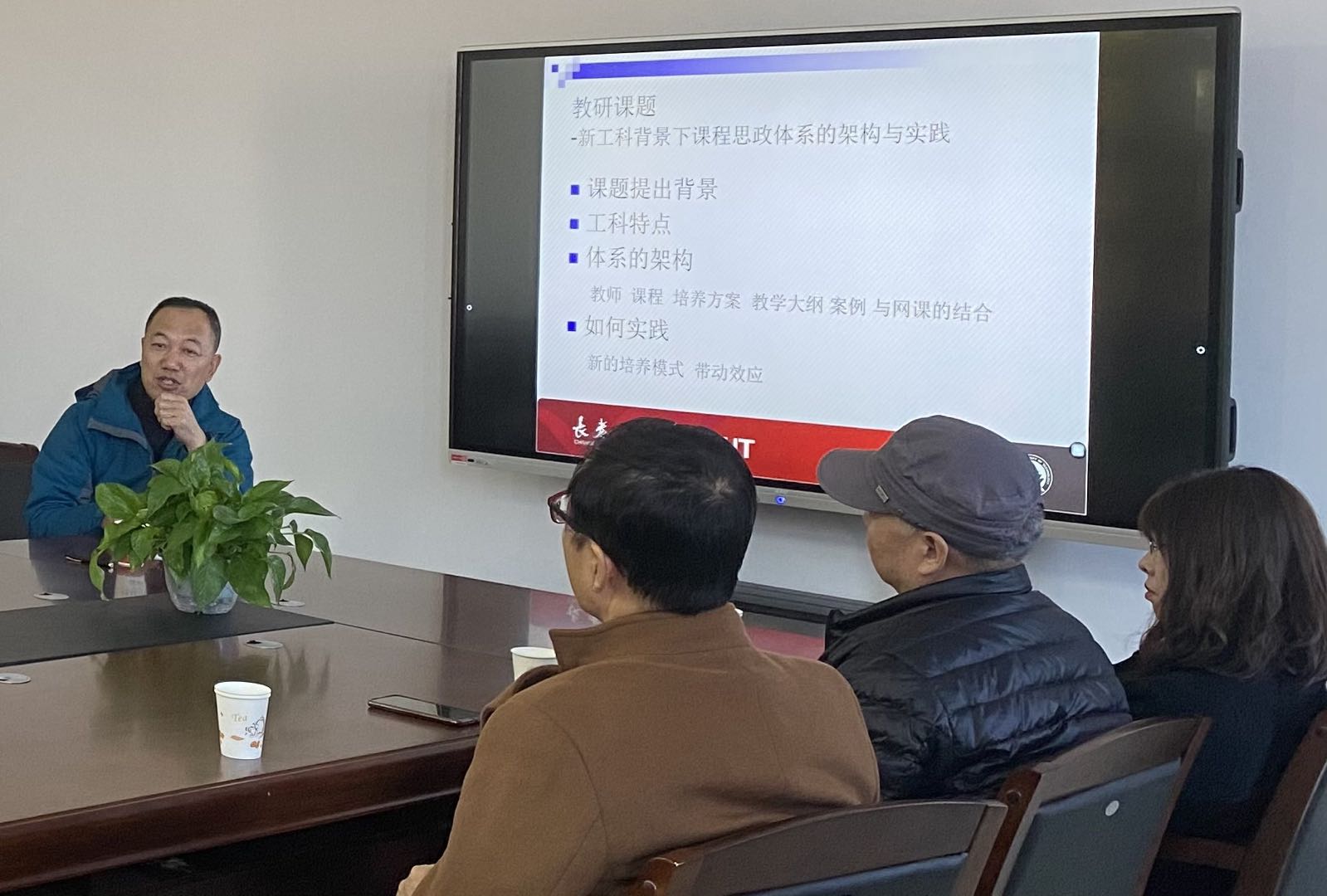 结对单位马克思主义学院副院长于浚湜就深入挖掘专业课程中的思想引领和对国家政策的宏观把握做了交流报告。