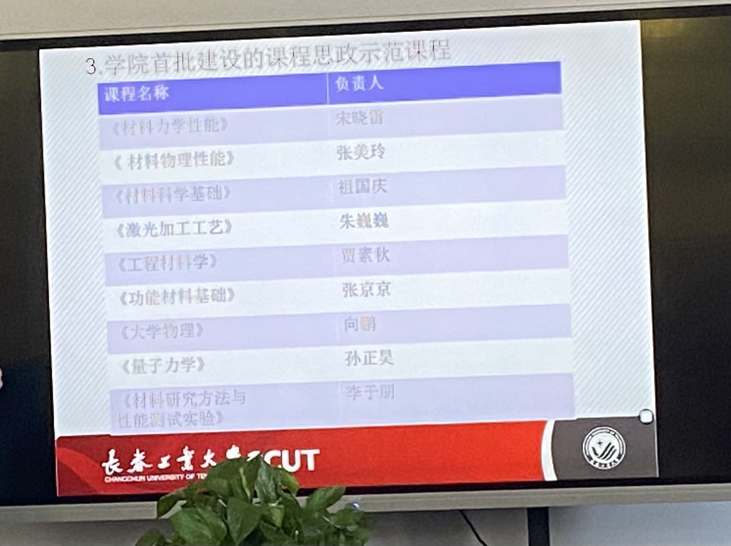 副院长刘耀东公布了我院在《焊接成型原理》等6门校级课程思政示范课程的基础上,推荐和遴选确定《材料力学性能》等9门院级思政示范课程重点建设并实行动态管理。在加强美育教育的同时,组建了《材料之美》4人课程组,并探讨在专业美学中融入思政元素的体现方式。
