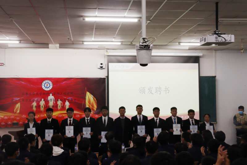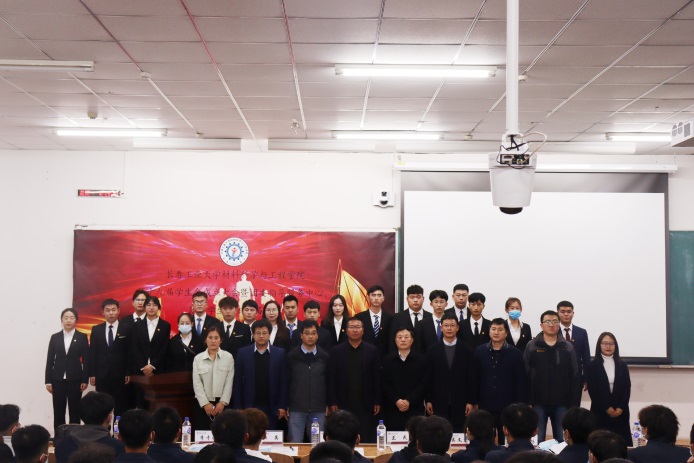 团委书记万杨,学院实验中心系党支部书记李于朋,材料成型及控制工程系副主任祖国庆,学院学生第二党支部书记张晓君,学院学生部第一党支部书记李爽。