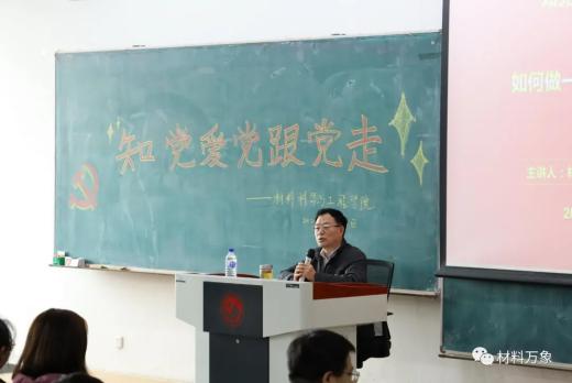 在西区302教室,由党委书记兰民作“知党爱党跟党走”主题报告会,就如何做一个大学生展开报告。