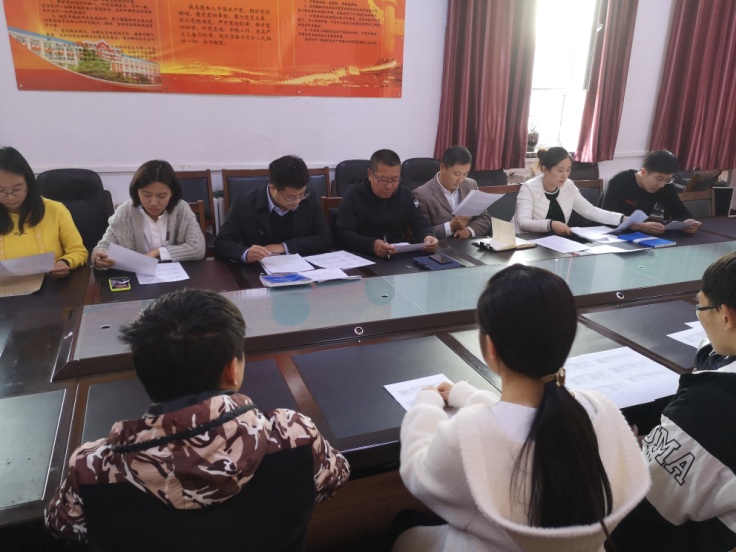 五楼会议室对16、17、18级学生进行国家励志奖学金和省政府奖学金的评选,本次评定工作会议由2017级辅导员张晓君主持。