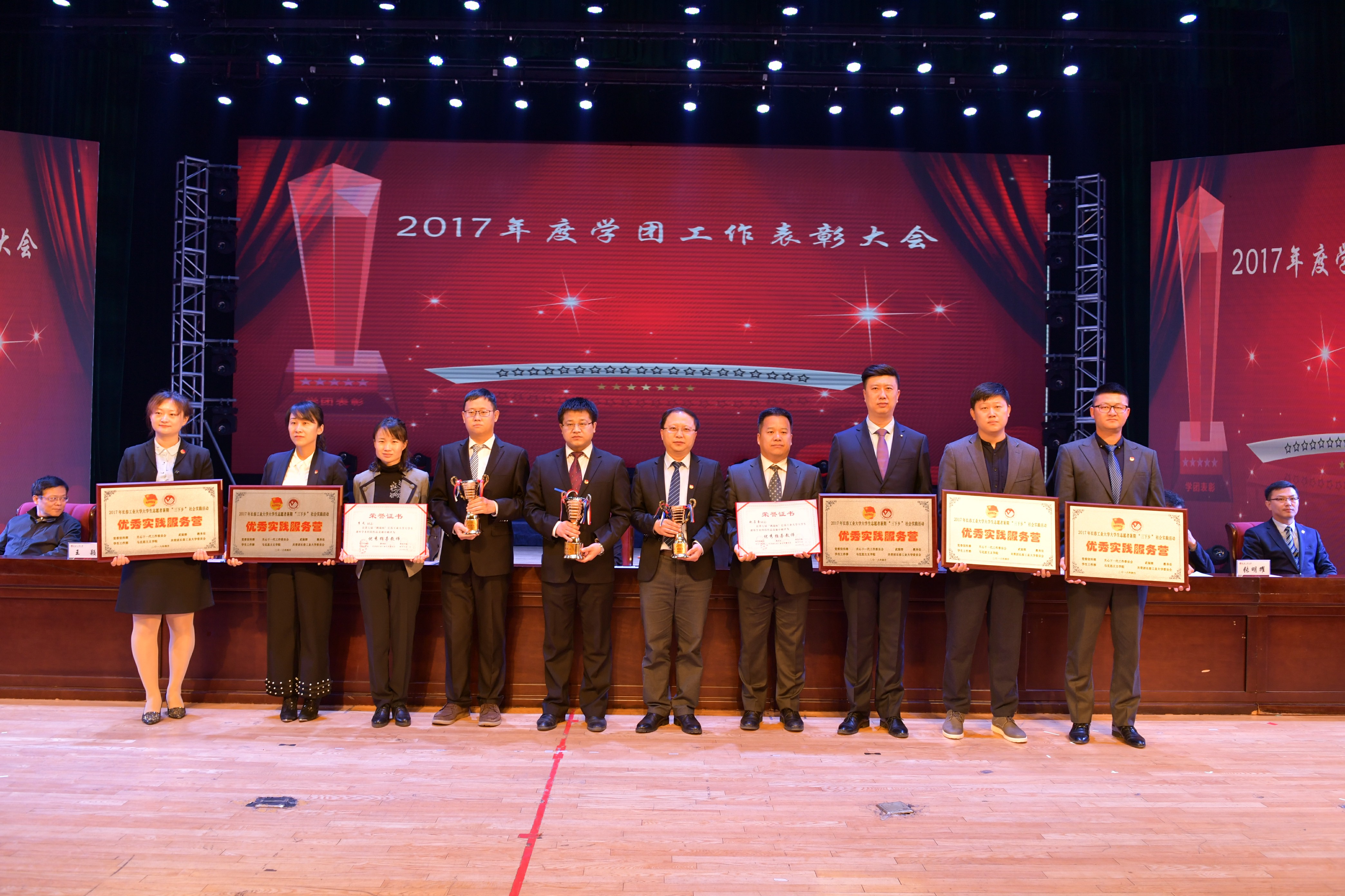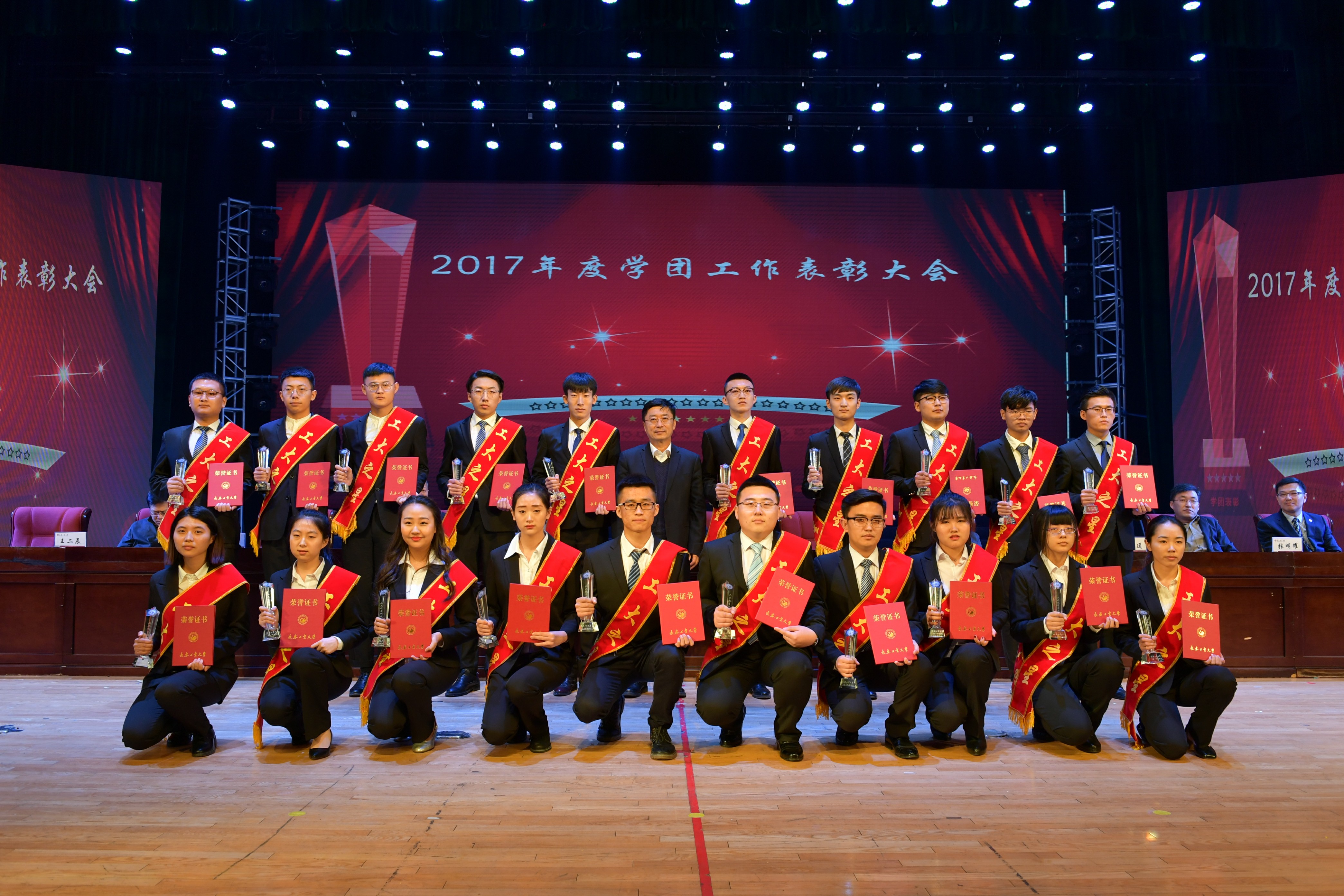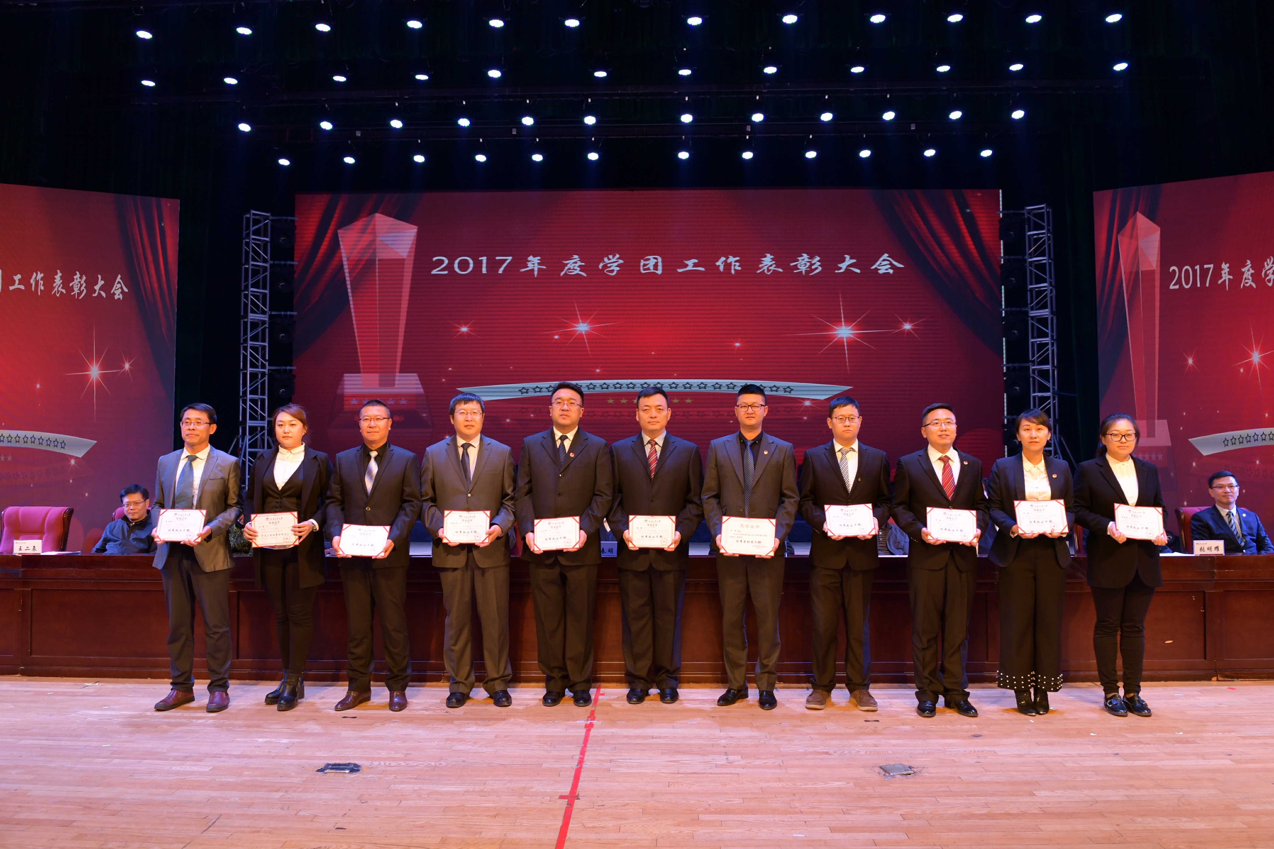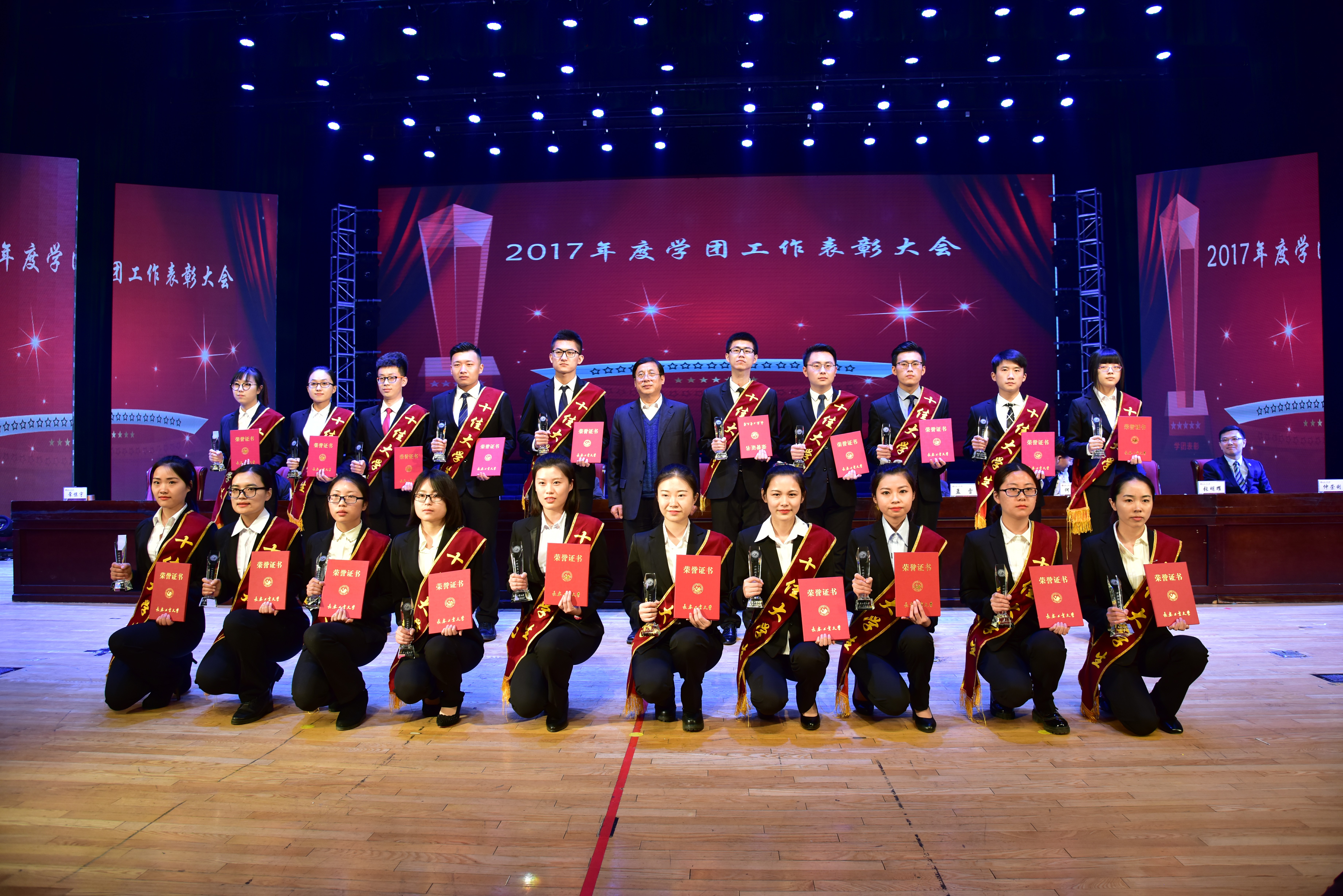 新闻网讯(通讯员徐培鑫)4月26日,学校在南湖校区大学生活动中心隆重召开2017年度学团工作表彰大会,学校党政领导出席大会并为受表彰的集体和个人颁奖。我院党委书记兰民、院长冉旭、党委副书记吴文东、副院长赵占奎、学生政工干部及全体受表彰师生代表受邀参加了大会。