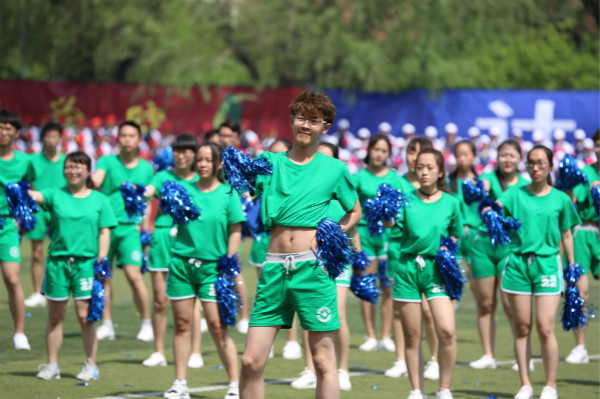开幕式结束后,文艺表演正式开始。伴着激昂的音乐,同学们身着绿色短衣短裤,衣着整齐,面带笑容,为大会献上了精彩纷呈的团体操演出。灵活的步伐,彰显着他们的青春魅力。整齐划一的动作,展现了团结默契,其中男生们灵活动作更是赢得了全场的惊叹与掌声。我院团体操比赛取得了北湖校区第三、全校第四的好成绩,荣获第三十九届田径运动会文艺表演二等奖。