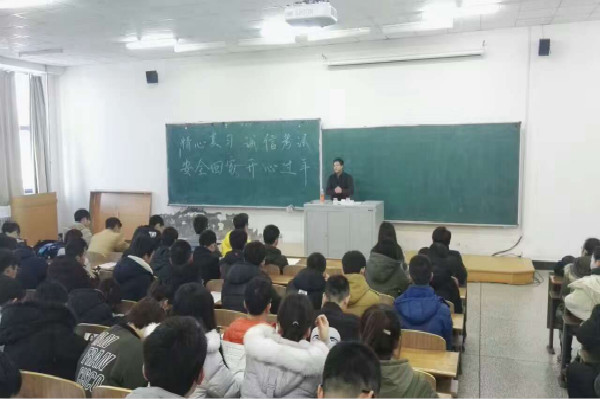 紧接着,万杨重点强调了诚信考试的重要性,动员大家在考试过程中,一定要做到诚信,不要有任何形式的舞弊行为,考试是检验大家一个学期以来的学习成果,如果复习的不充分,开学还会有补考的机会,但是一旦发生考试舞弊行为,学校一定将按照学生手册规定进行严肃处理。同时现场组织同学们签订了考试承诺书,并对承诺书中的内容进行了详细的解读。其次,万杨强调了假期回家及开学返校的安全性,希望同学们多一点自我保护意识,离开寝室前要关好门窗、关闭电源、返乡及返校途中注意人身安全及注意防盗、防骗等。