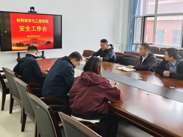 在材料楼425会议室召开安全工作会,学院党委书记张学忠、院长韩英、其他班子成员、办公室主任参加会议。